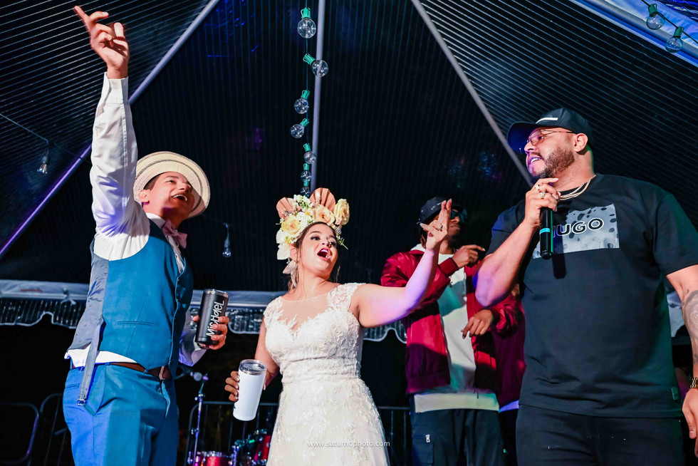 Entran los recién casados y lo que se nos vino fue una celebración, ¡estupenda!